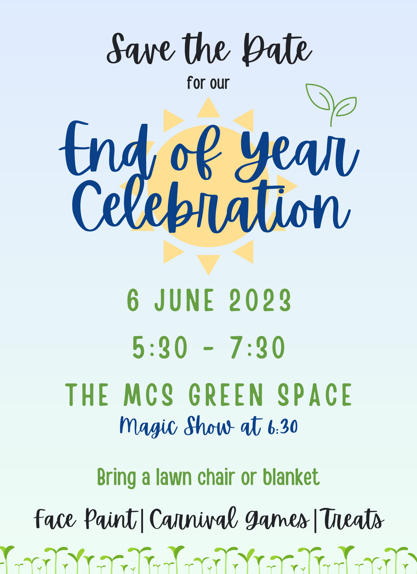 Our End of Year Celebration will take place on June 6th, 2023, from 5:30pm to 7:30pm.