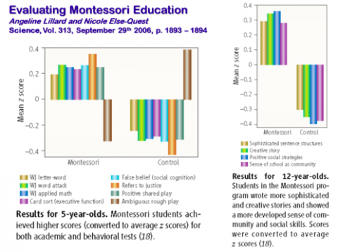 - Multi age classrooms: Angeline Stoll Lillard, in her authoritative research review Montessori: The Science Behind the Genius, describes the Montessori multi-age setting this way: “Montessori encourages learning from peers in part by using three-year age groupings. This ensures that as children move through the classroom they will be exposed to older and younger peers, facilitating both imitative learning and peer tutoring… Dr. Montessori was quite clear about the need for this mix of ages.” These multi age groupings also allow teachers, students and parents to develop close relationships, making a team approach to education manageable and effective.